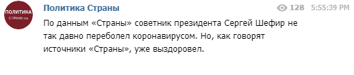 По данным "Страны" первый помощник президента Зеленского Сергей Шефир не так давно переболел коронавирусом.