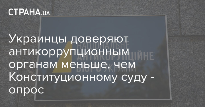 Уровень недоверия украинцев к антикоррупционным органам, таким как Национальное антикоррупционное бюро Украины (НАБУ) и Национальное агентство по вопроса предотвращения коррупции (НАПК), выше, чем к Конституционному суду Украины, за роспуск которого выступает президент Владимир Зеленский.