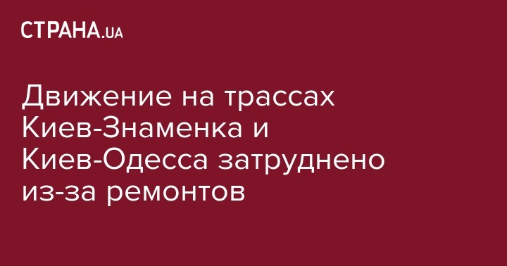 Управление превентивной деятельности полиции в Киевской области предупреждает водителей о том, что из-за ремонта дорог на некоторых участках дороги Киев-Знаменка и Киев-Одесса может быть затруднено движение. Об этом сообщает пресс-служба ведомства.
