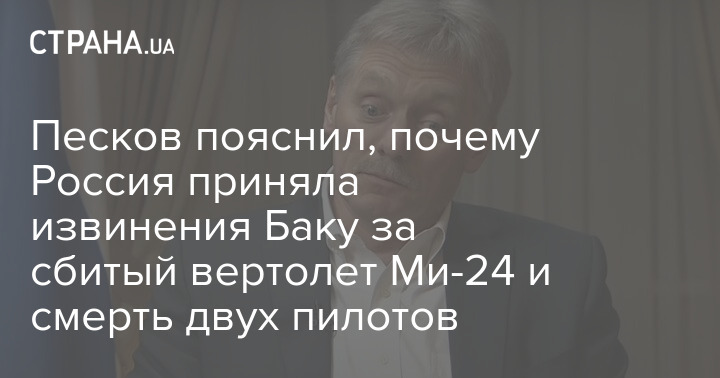 Песков пояснил, почему Россия приняла извинения Баку за сбитый вертолет Ми-24 и смерть двух пилотов