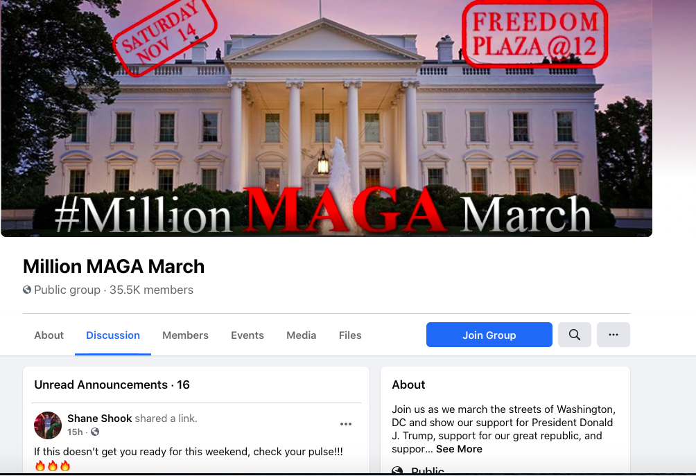 "Присоединяйтесь к нам на марше по улицам Вашингтона, округ Колумбия, для демонстрации поддержки президента Дональда Трампа, поддержки нашей великой республики и поддержки свободных и честных выборов. Дональд Трамп встал и боролся за американский народ. Пришло время встать за него и за нашу конституцию", - говорится в информации о группе.
