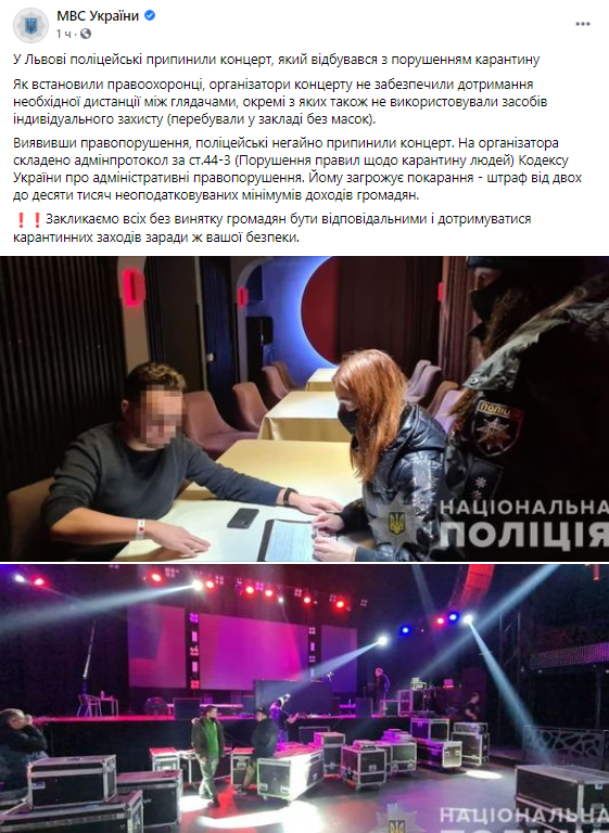 10:50 Во Львове полиция заявила, что остановила концерт, который проходил ночью. Как пишут местные СМИ - речь о группе "Бумбокс".