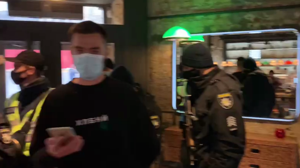 11:04 В киевской пекарне "Хлебный" идет перепалка полиции с администрацией. Копы требуют от гостей покинуть заведение, но управляющий говорит, что полиция не имеет права указывать посетителям.