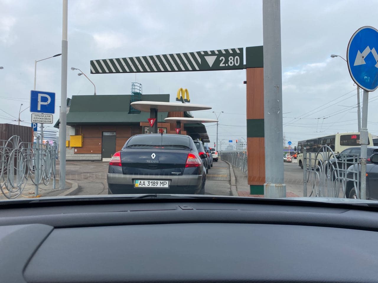14:04 На Макдрайвах в Киеве сегодня аншлаг. В очередях приходится стоять по 40 минут.