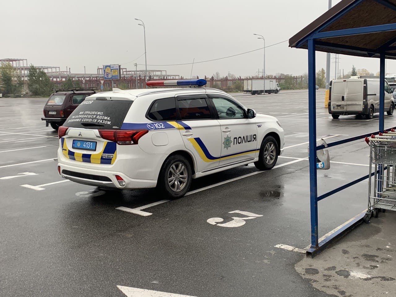09:10 На входе в "Эпицентр", расположенный на проспекте Григоренко, дежурит патруль полиции, который следит за соблюдениями норм карантина.