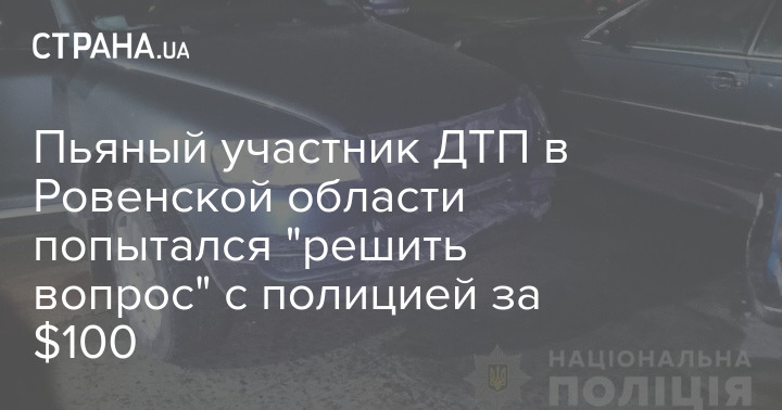 Пьяный участник ДТП в Ровенской области попытался "решить вопрос" с полицией за $100