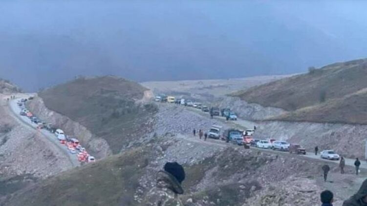 На выезде из Нагорного Карабаха, где недавно урегулировали военный конфликт между Азербайджаном и Арменией, образовалась пробка. По итогам войны 2020 года Азербайджан вернул себе часть территорий, после этого проживающие там армяне покидают населенные пункты.