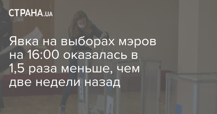 По состоянию на 16:00 явка во время повторного голосования на выборах мэров украинских городов составила 18,6%.