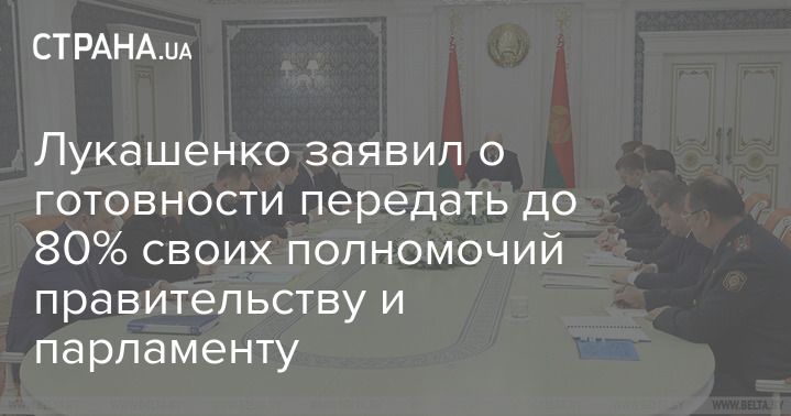 Президент Беларуси Александр Лукашенко допустил, что 70-80% полномочий главы государства могут быть переданы парламенту и правительству. Об этом он заявил на сегодняшнем совещании по вопросу дорожного сбора, передает БелТА.