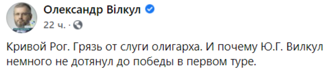 При этом Александр Вилкул (экс-губернатор Днепропетровской области, экс-нардеп и сын Юрия Вилкула) практически открыто обвинял Ахметова в том, что действующий мэр не смог победить сразу, в один тур.