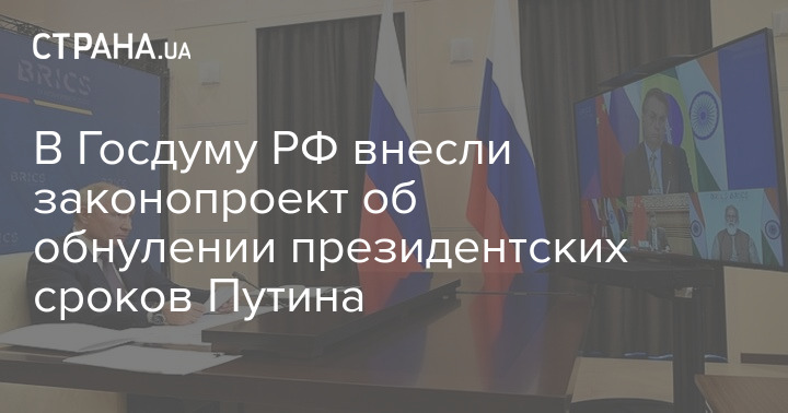 В Госдуму России внесло законопроект, который предусматривает обнуление президентских сроков Владимира Путина и возможность еще дважды баллотироваться на пост главы государства. Об этом пишет "Медуза".