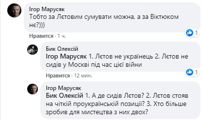 Праворадикал Алексей Бык, который запомнился нападением на журналиста Руслана Коцабу, а сейчас участвует в акциях "Нацкорпуса", также написал, что удивлен тому, что в Украине скорбят по Виктюку, ведь он жил и работал в Москве.
