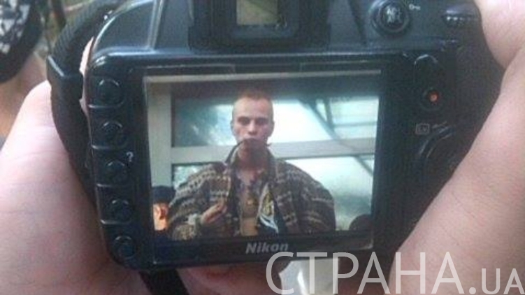 Во время сегодняшнего погрома на канале "Интер" который устроили около пятнадцати человек в балаклавах, корреспонденту "Страны" удалось сфотографировать одного из нападавших, который руководил атакой.