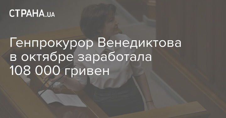 В октябре зарплата генпрокурора Ирины Венедиктовой с учетом надбавок и доплат составила 108 000 гривен.