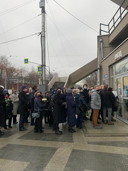 Как пишет "КоммерсантЪ", на входе в театр дежурят полицейские. Люди заходят в театр и поднимаются в главный зал, где звучит траурная музыка.
