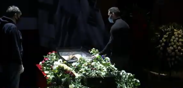 Церемония прощания была открытой - проститься с ним пришли десятки людей. Их просили соблюдать дистанцию и все меры по профилактике распространения Covid-19. Все гости были в защитных масках и перчатках.