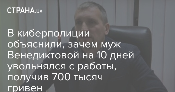 В департаменте киберполиции Украины рассказали об обстоятельствах увольнения с должности его замглавы, мужа генпрокурора Ирины Венедиктовой Дениса Колесника и восстановления его на службе через 10 дней. Получение Колесником разовой финансовой помощи и других выплат в размере 774 тысяч гривен правоохранители не комментировали.