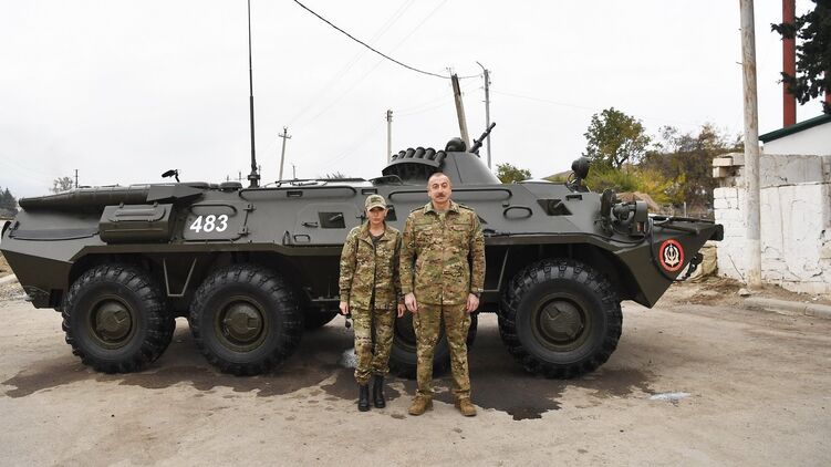 Президент Азербайджана Ильхам Алиев отправился в поездку на броневике на новые подконтрольные территории в Нагорном Карабахе.