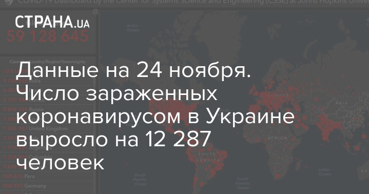 Данные на 24 ноября. Число зараженных коронавирусом в Украине выросло на 12 287 человек