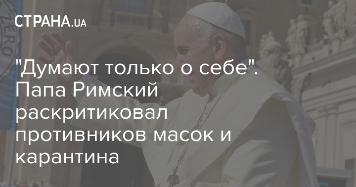 Папа Римский Франциск, который поддержал идею однополых браков, раскритиковал людей, протестующих против ношения защитных масок и недовольных карантином, который власти вводят для избежания распространения коронавируса. По мнению понтифика, эти люди думают только о себе.