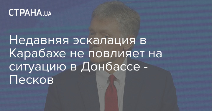 Недавняя эскалация в Карабахе не повлияет на ситуацию в Донбассе - Песков