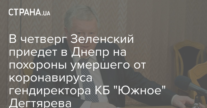 Президент Украины Владимир Зеленский примет участие в церемонии прощания с генеральным директором КБ "Южное" Александром Дегтяревым, который накануне скончался от осложнений, вызванных коронавирусом. Прощание пройдет в Днепре в четверг, 26 ноября.