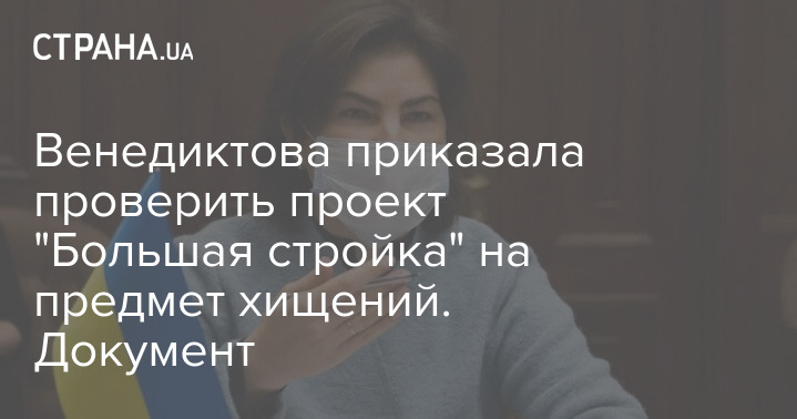 Венедиктова приказала проверить проект "Большая стройка" на предмет хищений. Документ