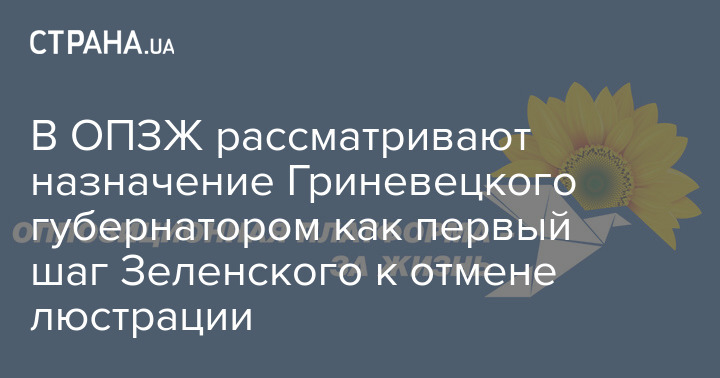 После того, как стало известно, что президент Украины Владимир Зеленский решил назначить губернатором Одесской области Сергея Гриневецкого, партия "Оппозиционная платформа - За жизнь" выступила с заявлением в котором положительно расценила тот факт, что президент собирается назначить на пост главы ОГА чиновника, который подпадает под люстрацию.