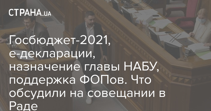 Сегодня, 28 ноября, состоялось совещание руководства парламента, правительства и лидеров фракций. На нем обсудили бюджет на 2021 год, законы по "конституционному кризису", назначение главы НАБУ, законы о поддержке бизнеса и отсрочке РРО, а также эффективность карантина выходного дня.