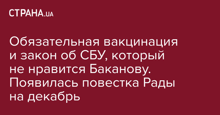 Обязательная вакцинация и закон об СБУ, который не нравится Баканову. Появилась повестка Рады на декабрь