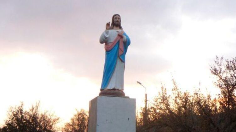 В селе Осипенко Запорожской области вместо памятника Владимиру Ленину поставили скульптуру Иисуса Христа.