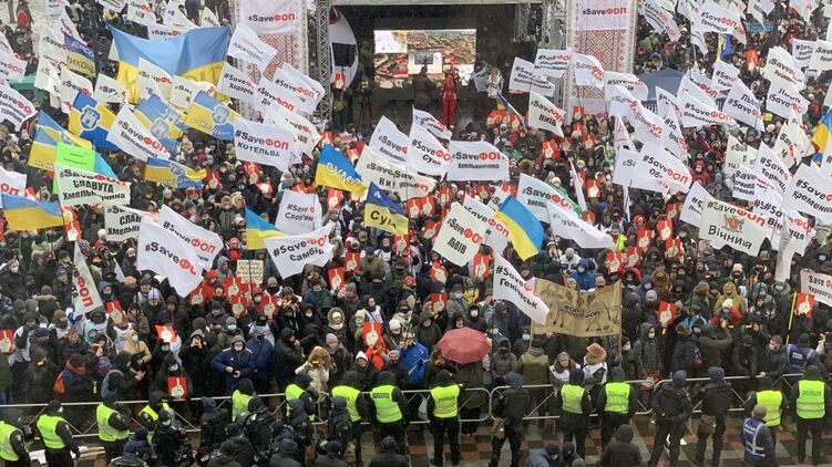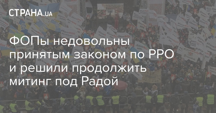 Участники акции протеста ФОПов, которая продолжается под стенами Рады с утра вторника, 1 декабря, не стали прерывать митинг после того, как парламент отсрочил введение кассовых аппаратов для части предпринимателей до 2022 года.