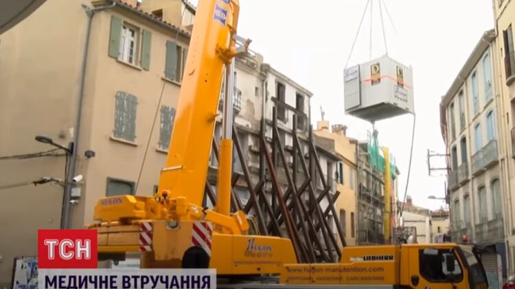 Во Франции для эвакуации из квартиры мужчины весом в 300 кг разобрали фасад дома и применили кран. Видео