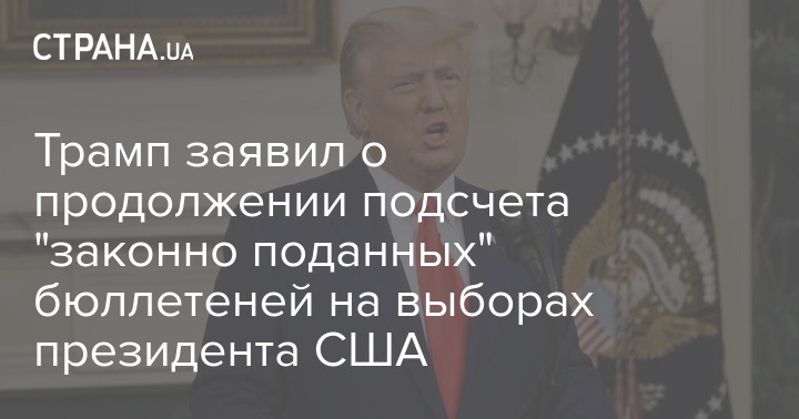 Трамп заявил о продолжении подсчета "законно поданных" бюллетеней на выборах президента США