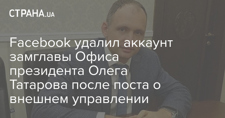 После поста в Facebook заместителя главы Офиса президента Украины Олега Татарова о внешнем управлении администрация социальной сети заблокировала его аккаунт.