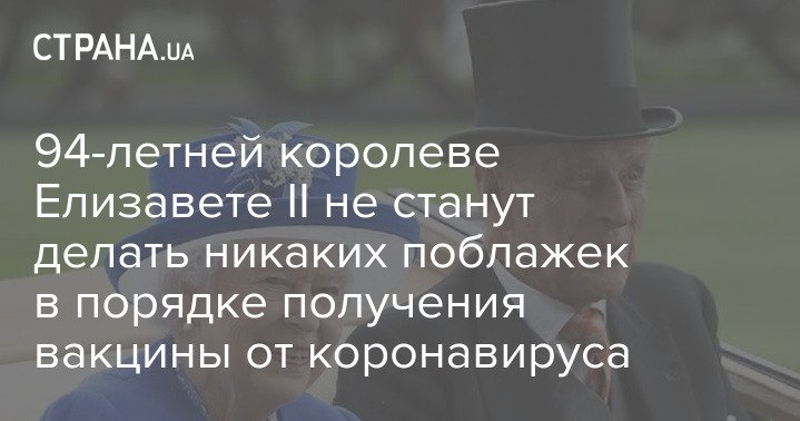 "У 94-летней королевы и 99-летнего принца Филиппа при вакцинации не будет каких-то особых условий, они получат прививку в порядке очереди", - говорится в сообщении.