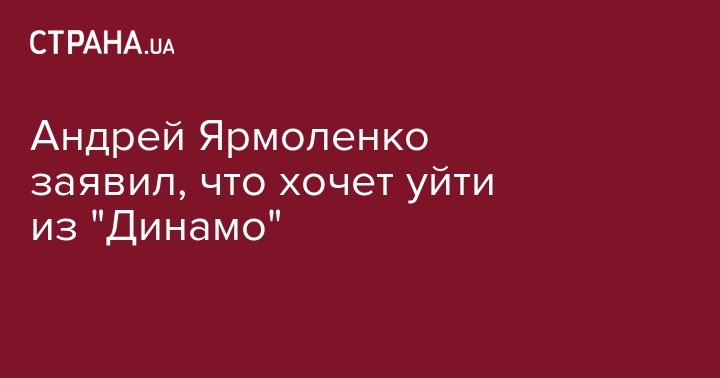 Андрей Ярмоленко заявил, что хочет уйти из "Динамо"