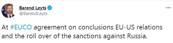 Напомним, что экономические санкции ЕС против России продлеваются на каждые полгода после политических решений саммитов Евросоюза на основе оценки хода выполнения Минских соглашений по урегулированию конфликта на востоке Украины по сообщениям стран-участниц "нормандского формата" - Германии и Франции.