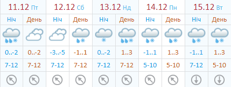 В ближайшие дни погода в Киеве не изменится. По данным Укргидрометцентра, в субботу, 12 декабря, ночью мороз достигнет отметки в -5 градусов, а завтра днем ожидается еще больше мокрого снега.