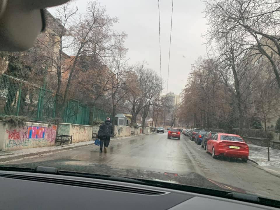 Утром ситуация не улучшилась - если проезжую часть хотя бы как-то раскатали автомобили, то тротуары в Киеве, Житомире и многих других города практически непроходные.