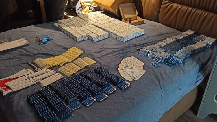 При проведении 11 санкционированных обысков на территории Киева и Киевской области было изъято почти 200 тысяч поддельных таблеток, производственное оборудование, фасовочный материал для готовой продукции, черновые записи и другие вещественные доказательства. Стоимость изъятой продукции составляет более 4 млн гривен.