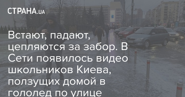 В Cети появилось видео группы школьников, которые изо всех сил пытаются попасть домой после уроков. Задача сильно усложнилась гололедом, который сковал украинскую столицу.