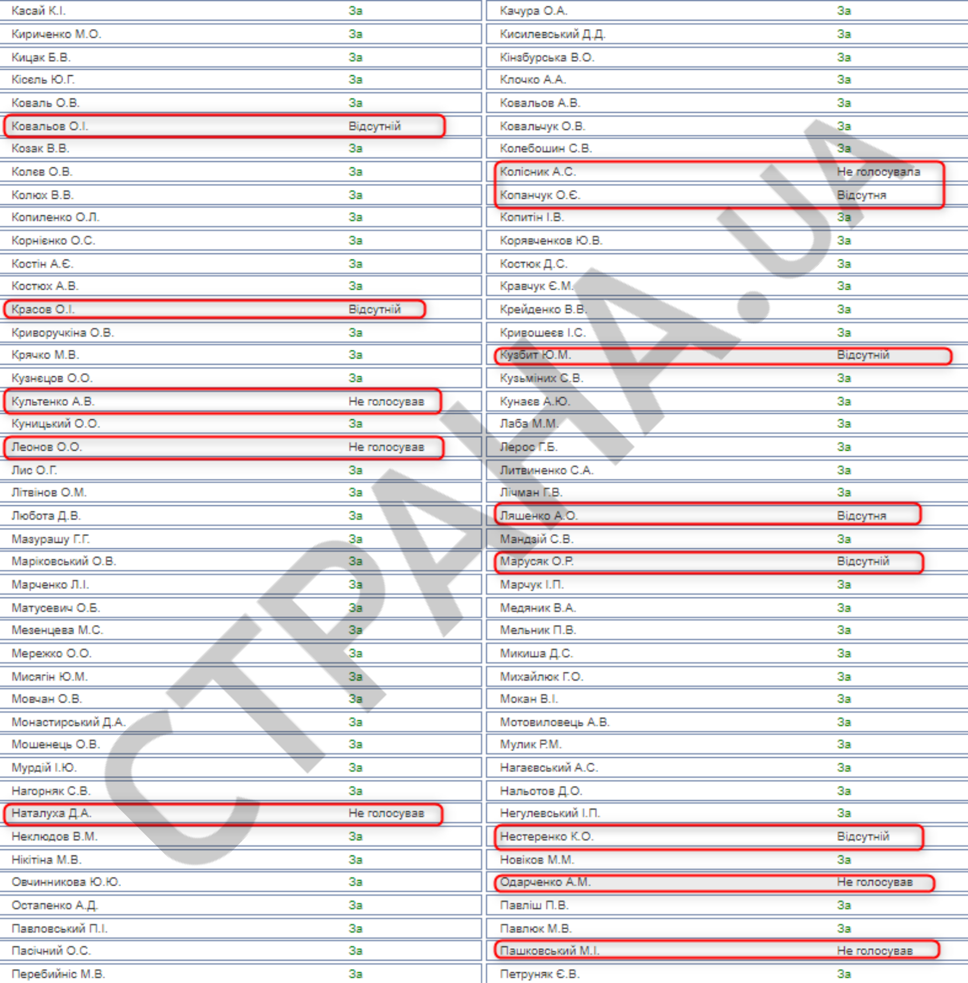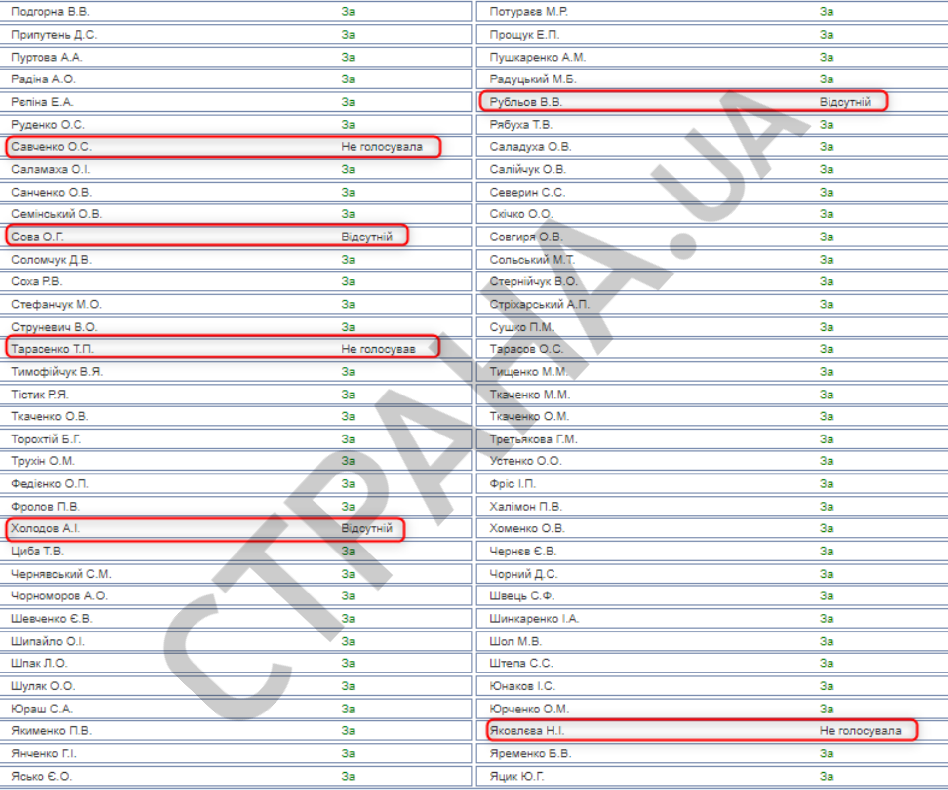 Также не попали в список два нынешних нардепа от "слуг", которые на момент голосования 30 апреля не были нардепами (Маслов и Гунько).