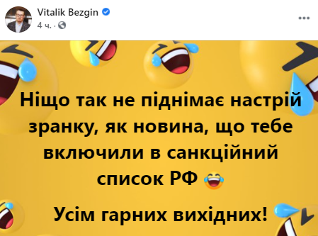 "Ничто так не поднимает настроение утром, как новость, что тебя включили в санкционный список РФ