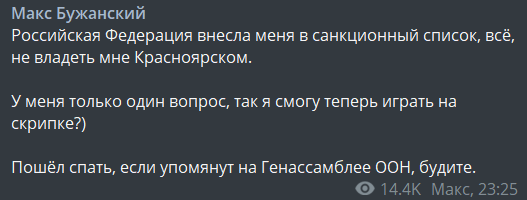 "Российская Федерация внесла меня в санкционный список, всё, не владеть мне Красноярском.
