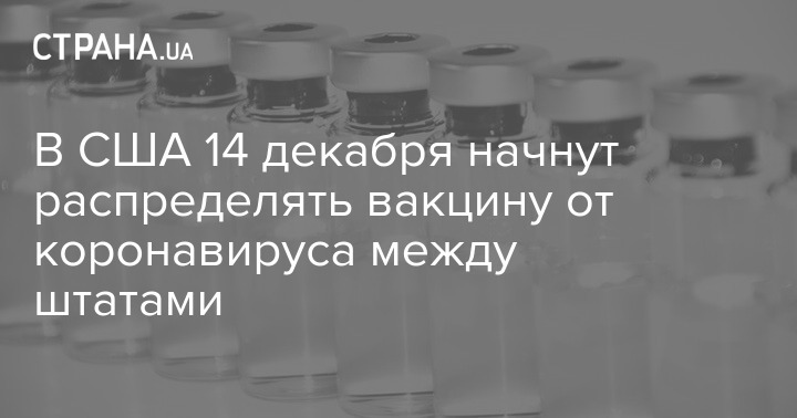 Оперативный руководитель программы США по противодействию Сovid-19 Густав Перн заявил, что вакцину от коронавируса компании Pfizer получат в центрах распространения уже в понедельник, 14 декабря.