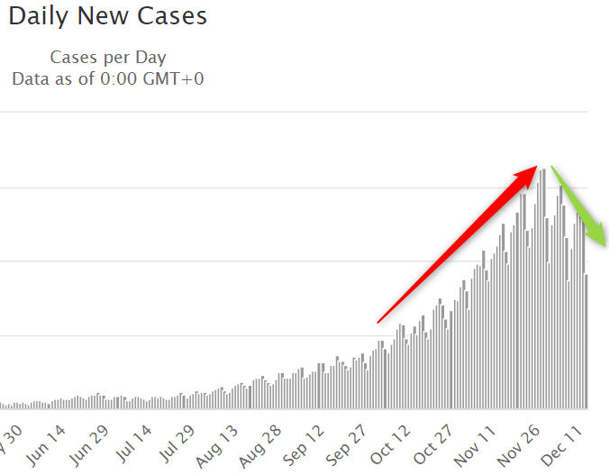 28 ноября был зафиксирован антирекорд в 16 294 случая. После этого статистика только раз дошла до 15 тысяч, в остальные дни этой планки не превышала и колебалась на уровне 12-13 тысяч.
