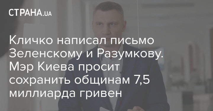 Кличко написал письмо Зеленскому и Разумкову. Мэр Киева просит сохранить общинам 7,5 миллиарда гривен