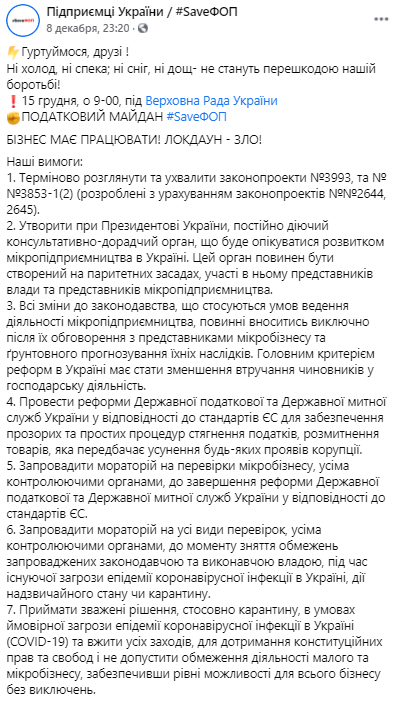 На сегодня, 15 декабря, ФОПовцы анонсировали "Налоговый майдан".