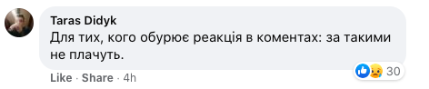 "Для тех, кого возмущает реакция в комментах: за такими не плачут", - пишет Тарас Дидык, коммент которого лайкнули десятки человек.